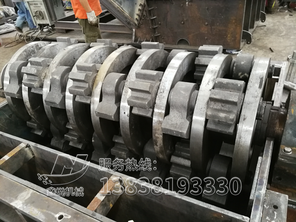 一:采用双轴或单轴低速转动,利用刀盘对物料进行切、割、撕、拉。直连蜗轮蜗杆减速电机,直接安装在粉碎机主动轴上,通过齿轮变速传至从动轴,使主动轴的动刀与壳体上的静止刀盘形成相对运动。主动轴上的螺旋齿刀盘交错排列,使物料进入后,同时受到挤、撕、剪的作用,从而使物料得到破碎。